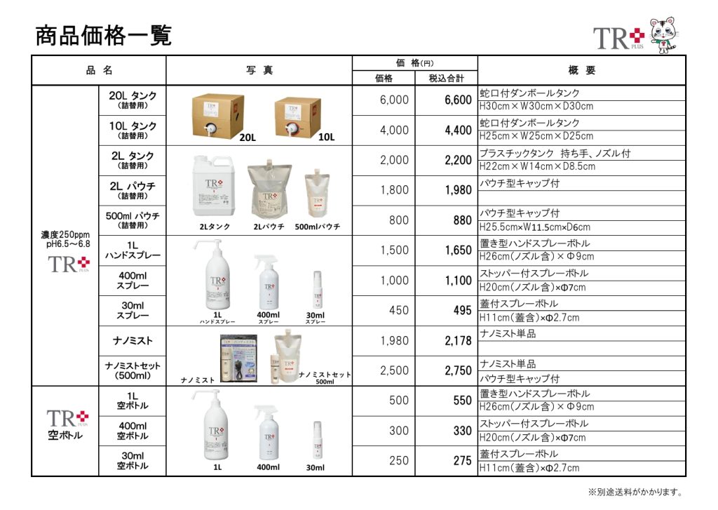 最新の価格表はこちら TR+新価格表
